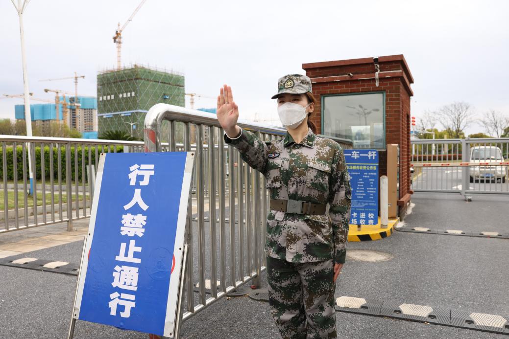 据了解,为了更好地完成“清零行动”,退役在校大学生们还协助保卫处做好正大门和望城门的“坐岗”任务。从早晨7时至19时,他们分为三班岗,每四小时轮换。“同学们都挺互相理解、互相包容的,”王佩欣说,在劝导过后同学都会理解并遵守防疫规则,她在其中深受感触。
